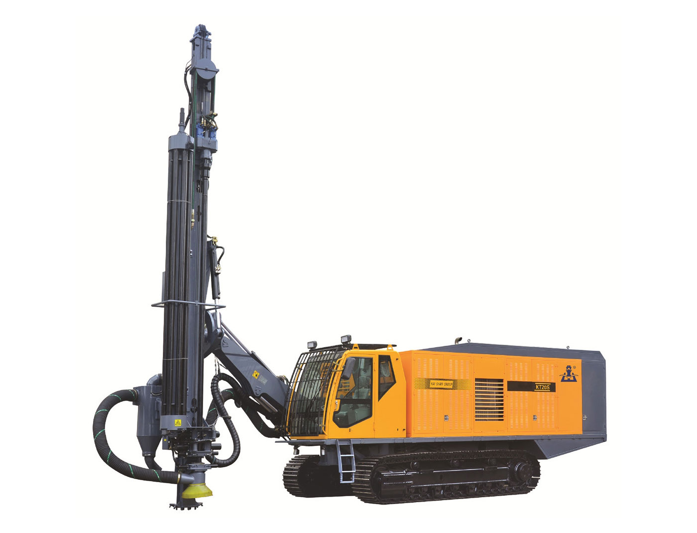 "開山"牌KT20S型露天潛孔鉆車是開山集團在多年開發(fā)生產(chǎn)潛孔鉆車的基礎上,針對大型露天礦山的需求,而精心設計的新型鑿巖設備。該鉆車行走、推進、回轉及角度調整等動作均采用液壓驅動,動力強勁;配用高風壓螺桿機頭及高風壓氣動沖擊器,鑿巖效率高;配有液壓干式集塵器收集粉塵,減少對環(huán)境的污染;并配有液壓機械手及鉆桿庫拆缷鉆桿、浮動接頭保護鉆桿螺紋,一個人即可拆缷鉆桿;空調駕駛室提供舒適的工作環(huán)境及自動控制防卡閥減少卡鉆機率。鉆車具有整體性好、自動化程度高、鑿巖效果好、環(huán)保節(jié)能、操作方便、機動靈活、行駛安全等特點。
