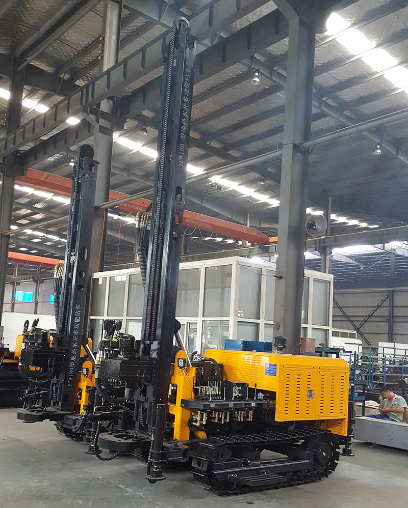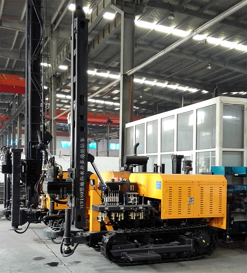 KW180/YCW180型地熱水井多功能鉆車是一種輕型、高效、多功能的鉆鑿孔設備。具配備玉柴四缸國三發(fā)動機,有結構先進、使用方便、作業(yè)效率高、可靠耐用等特點,廣泛適用于鉆鑿水井、農業(yè)灌溉井、地熱空調孔及其他用途的井孔,尤其適用于山區(qū)和巖石地層的取水工程。該鉆車采用新型液壓技術,配套大扭矩液壓馬達回轉以及大缸徑液壓油缸推進,大幅降低了勞動強度,縮短了輔助時間,提高了施工效率和工程質量。