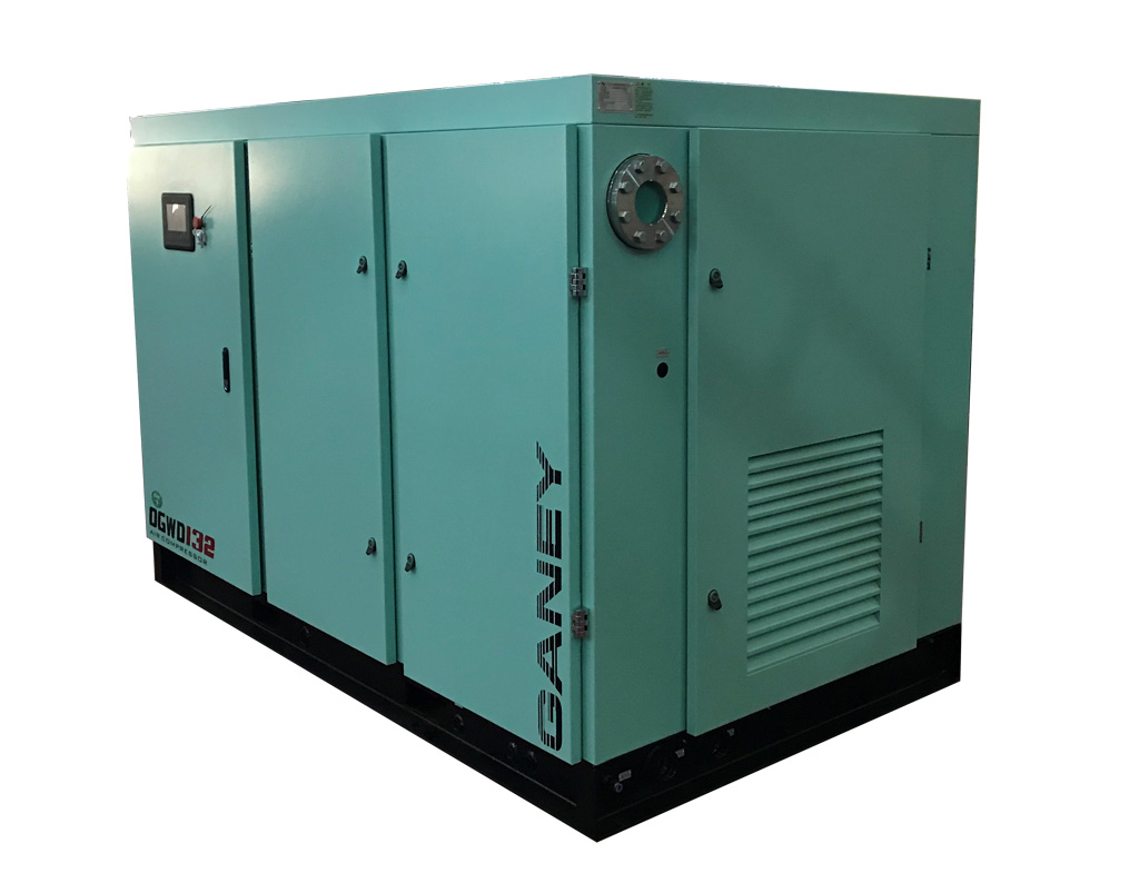 之水無須特殊處理,符合環保要求。由于水的作用,其壓縮又是理想的等溫壓縮,構成壓縮室的各個機械零部件縫隙利用水膜效果,防止空氣漏氣,所排放的空氣量比干式螺桿一次壓縮多25%