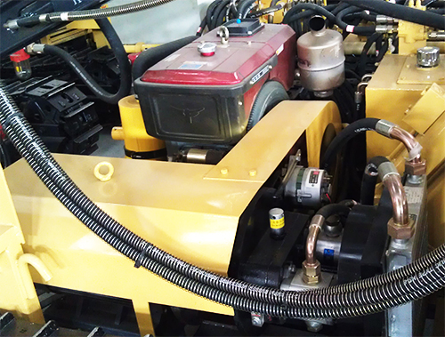 KG910C/YC910C型露天潛孔鉆車采用電動機和柴油機聯合驅動液壓泵為液壓系統提供動力。電動機和柴油機分開交錯使用,在無外接電源時使用柴油機,方便用戶進行較長距離移動和轉場;在有電源情況下使用電動機,具有安全環保,低噪聲,使用成本低的特點。