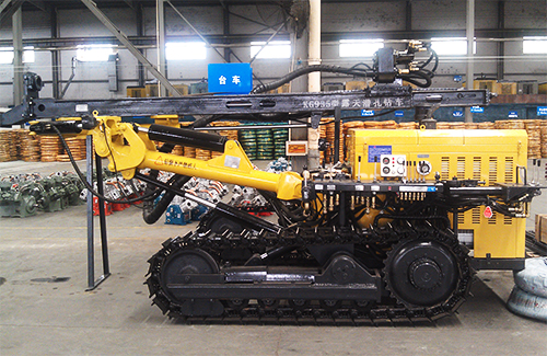 KG935/YC935 型露天潛孔鉆車以KG930B鉆車為基礎(chǔ),對行走部件、滑架部件、鉆臂部件及整機布局等進行創(chuàng)新設(shè)計了,主要有以下特點: