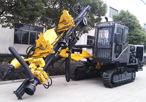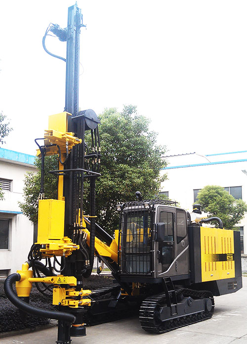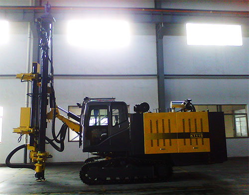 開山牌KT11S型一體式露天潛孔鉆車采用一個動力同時驅(qū)動液壓系統(tǒng)和高風(fēng)壓螺桿壓縮系統(tǒng)的方式,結(jié)構(gòu)緊湊,能量利用率高,具備自動接卸桿、駕駛室冷暖空調(diào)、干式集塵等功能模塊。鉆車具有整體性好、環(huán)保節(jié)能、自動化程度高、鑿巖效果好、操作方便、機動靈活、行駛安全等特點。適用于露天礦山、采石場、公路、鐵路、水利、電力、建筑等石方工程中的中、深孔接桿鑿巖作業(yè)。