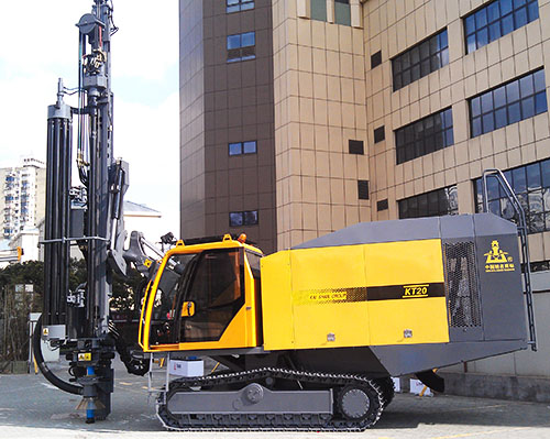 "開山"牌KT20型露天潛孔鉆車是開山集團在多年開發生產潛孔鉆車的基礎上,針對大型露天礦山的需求,而精心設計的新型鑿巖設備。該鉆車行走、推進、回轉及角度調整等動作均采用液壓驅動,動力強勁;配用高風壓螺桿機頭及高風壓氣動沖擊器,鑿巖效率高;配有液壓干式集塵器收集粉塵,減少對環境的污染;并配有液壓機械手及鉆桿庫拆缷鉆桿、浮動接頭保護鉆桿螺紋,一個人即可拆缷鉆桿;空調駕駛室提供舒適的工作環境及自動控制防卡閥減少卡鉆機率。鉆車具有整體性好、自動化程度高、鑿巖效果好、環保節能、操作方便、機動靈活、行駛安全等特點。